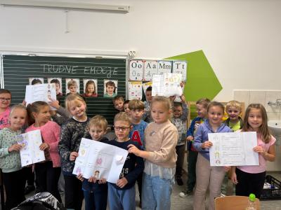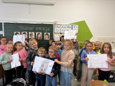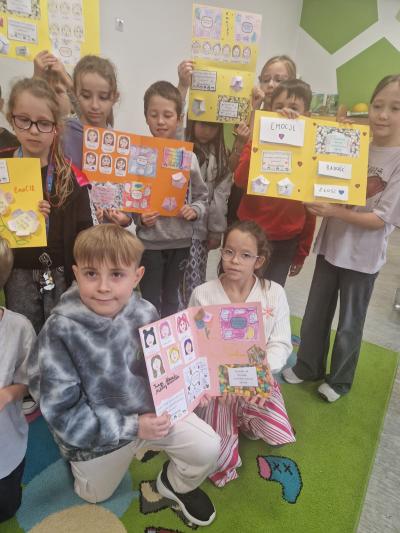 W ramach Tygodnia Przeciwdziałania Przemocy Rówieśniczej dzieci z klas 1-3 wykonały lapbooki nt. radzenia sobie z trudnymi emocjami.