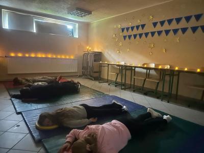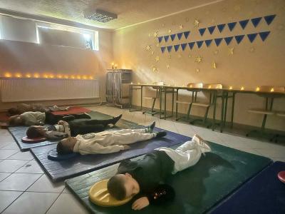 W ramach Tygodnia Przeciwdziałania Przemocy Rówieśniczej uczniowie klas 5 wzięli udział w treningu relaksacyjnym. W ciszy i spokoju wyobrażali sobie miejsce, w którym czują się dobrze i bezpiecznie.
