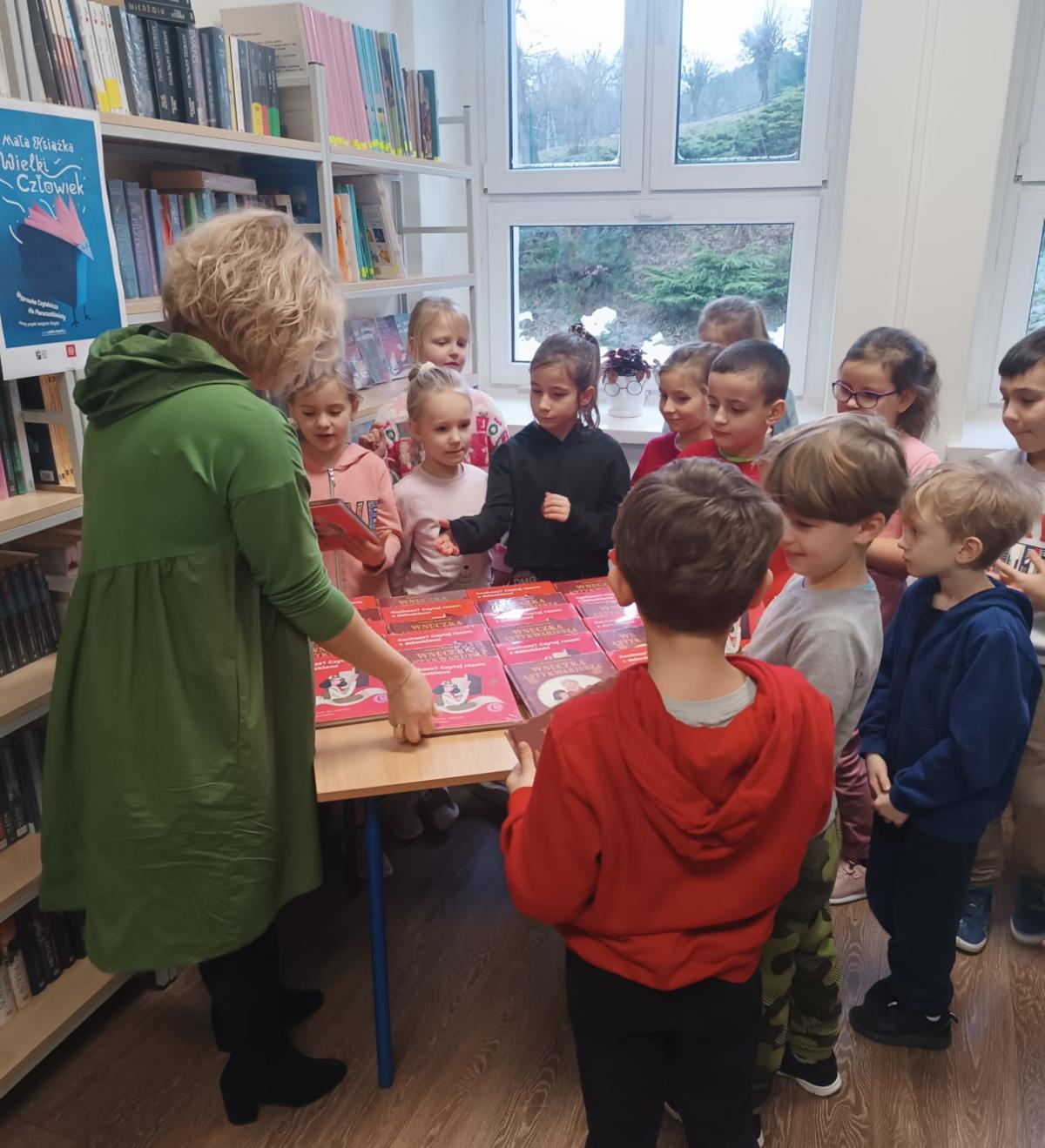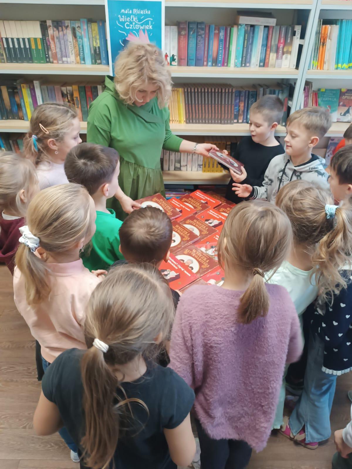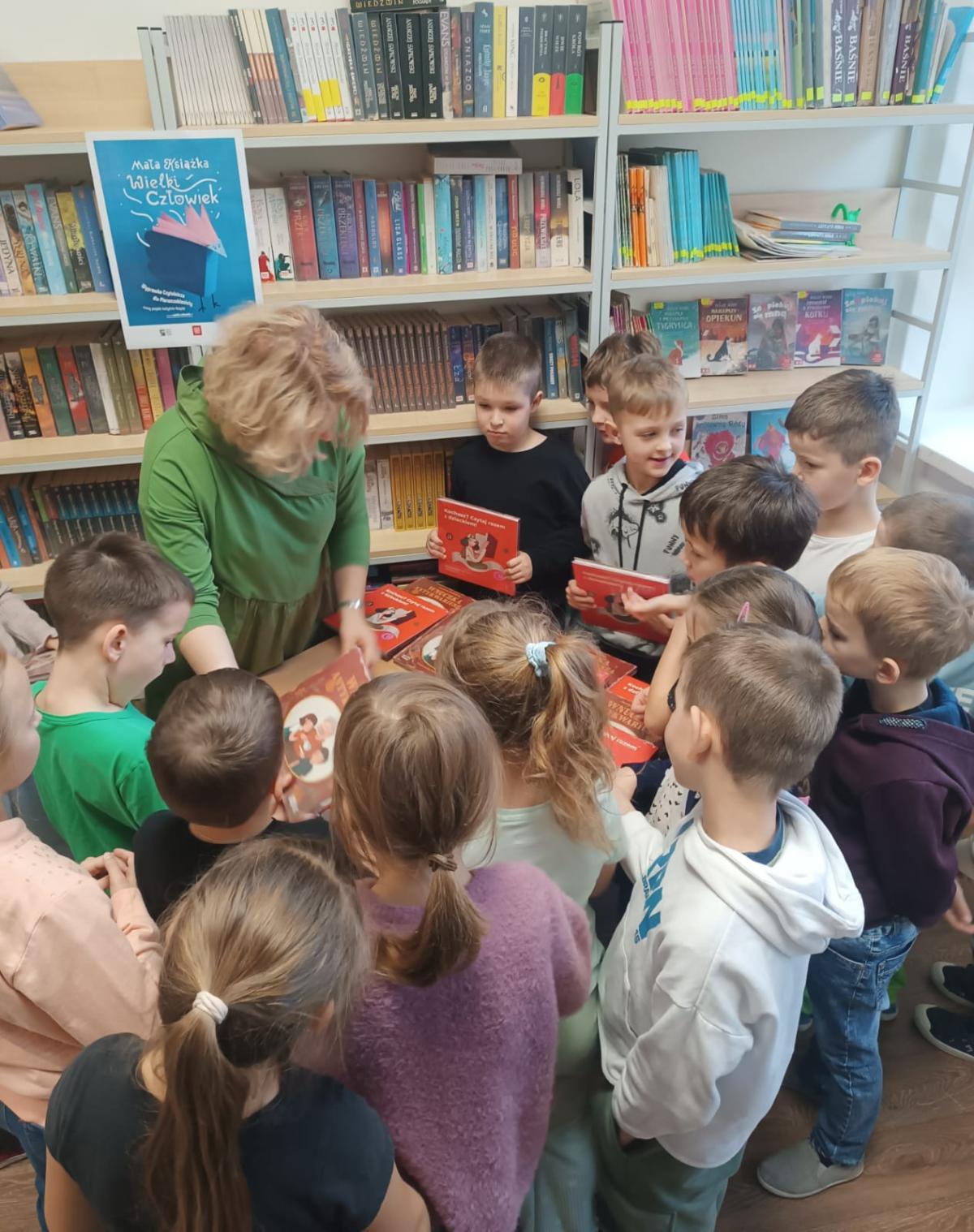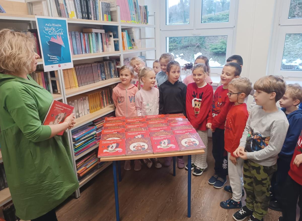 W ramach ogólnopolskiego projektu "Mała książka - wielki człowiek", którego celem jest promocja czytelnictwa wśród dzieci w różnych grupach wiekowych. Uczniowie klas I otrzymali wyprawkę czytelniczą przekazaną przez Instytut Książki z rąk Pani Dyrektor Izabeli Zaczyk w bibliotece szkolnej. W skład każdej Wyprawki wchodzi: *"Wnuczka antykwariusza" - książka cenionej pisarki Justyny Bednarek, *"Kochasz? Czytaj razem z dzieckiem!" - broszura, która jest poradnikiem dla rodziców i opiekunów, mówiącym o korzyściach wynikających ze wspólnego, rodzinnego czytania, a także zbiorem rekomendacji wartościowych książek przeznaczonych dla pierwszoklasistów. Wspólne czytanie niech stanie się niezwykłą przygodą i rozbudzi pasję czytania. Życzymy uczniom i rodzicom miłej lektury!