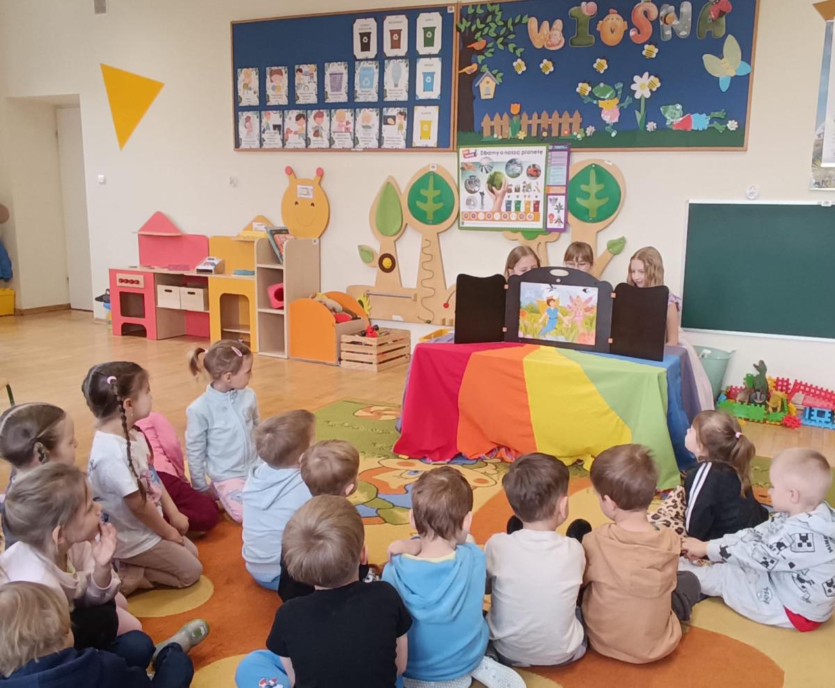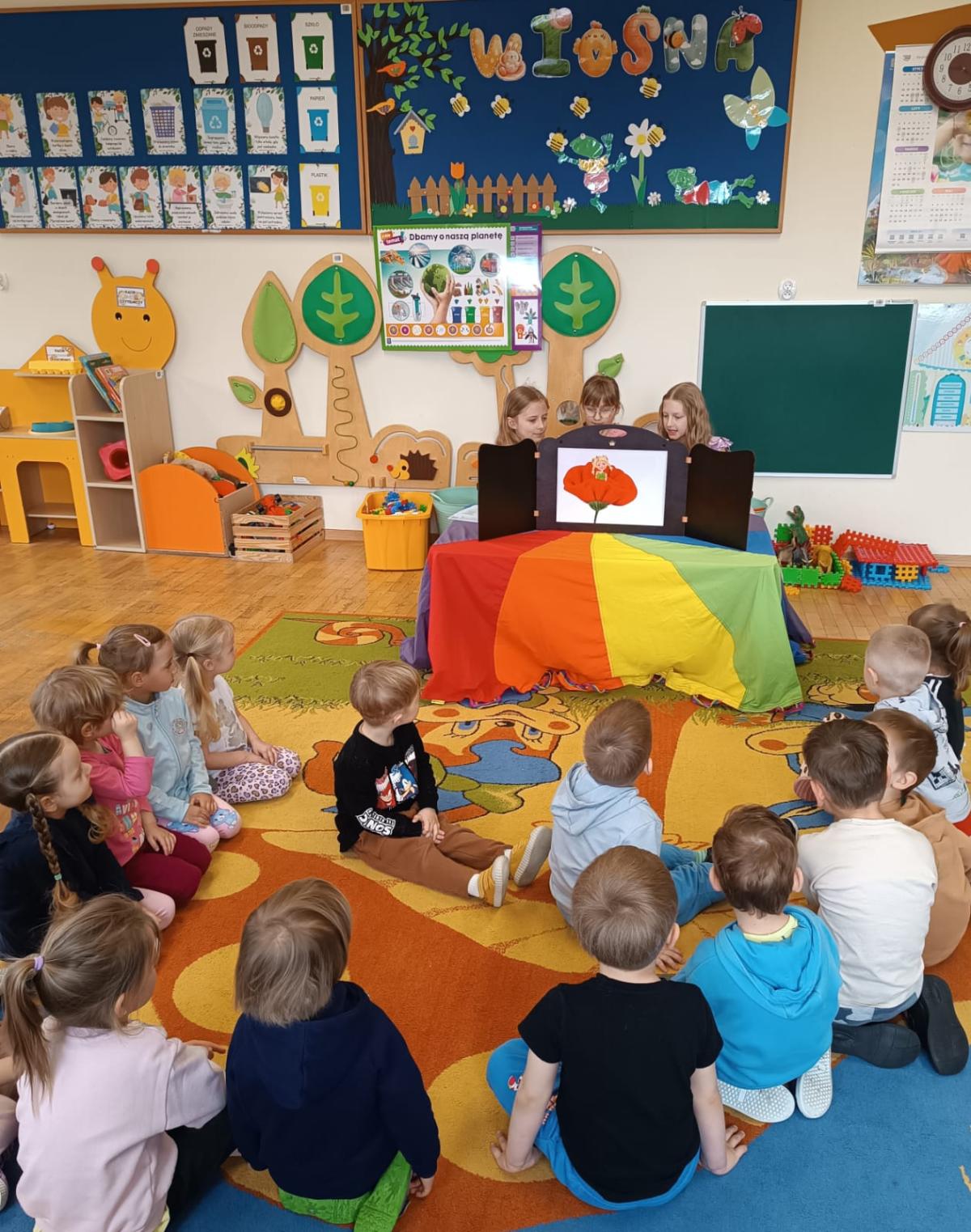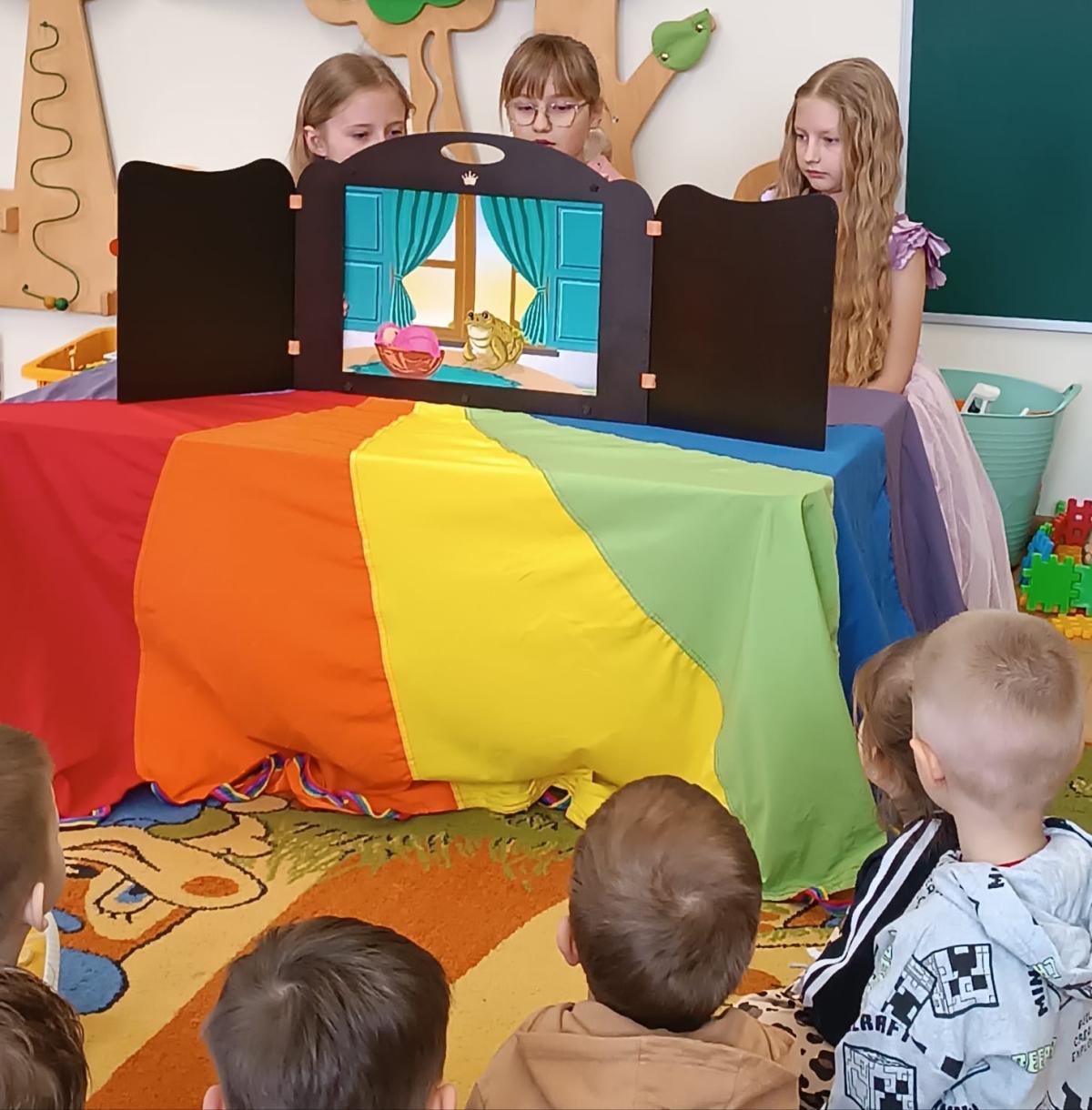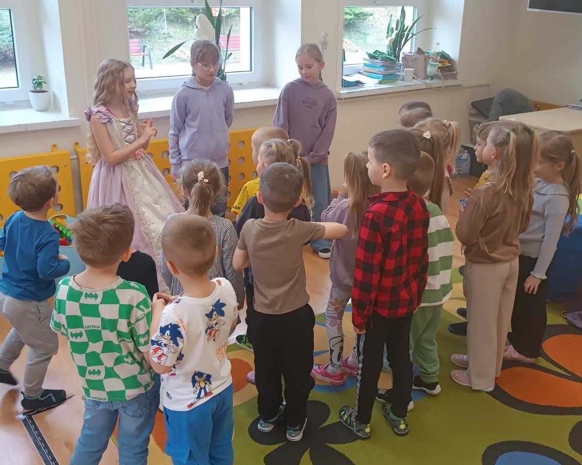W grupie przedszkolnej Krasnoludków i Motylków odbył się Dzień Książki dla Dzieci 📖🧚 Klub Czytelniczy pod opieką nauczyciela bibliotekarza przeczytał i przybliżył dzieciom baśń H. Ch. Andersena pt. "Calineczka" za pomocą Teatrzyku Kamishibai. Były zagadki, zadania i eksperyment "Rozkwitająca lilia wodna" 🪷, który nawiązywał do baśni oraz pokazał przedszkolakom proste zjawisko kapilarności - papierowe kwiaty z zagiętymi płatkami po położeniu na wodzie "rozkwitają". Dodatkową niespodzianką dla dzieci była uczennica przebrana za tytułową "Calineczkę".