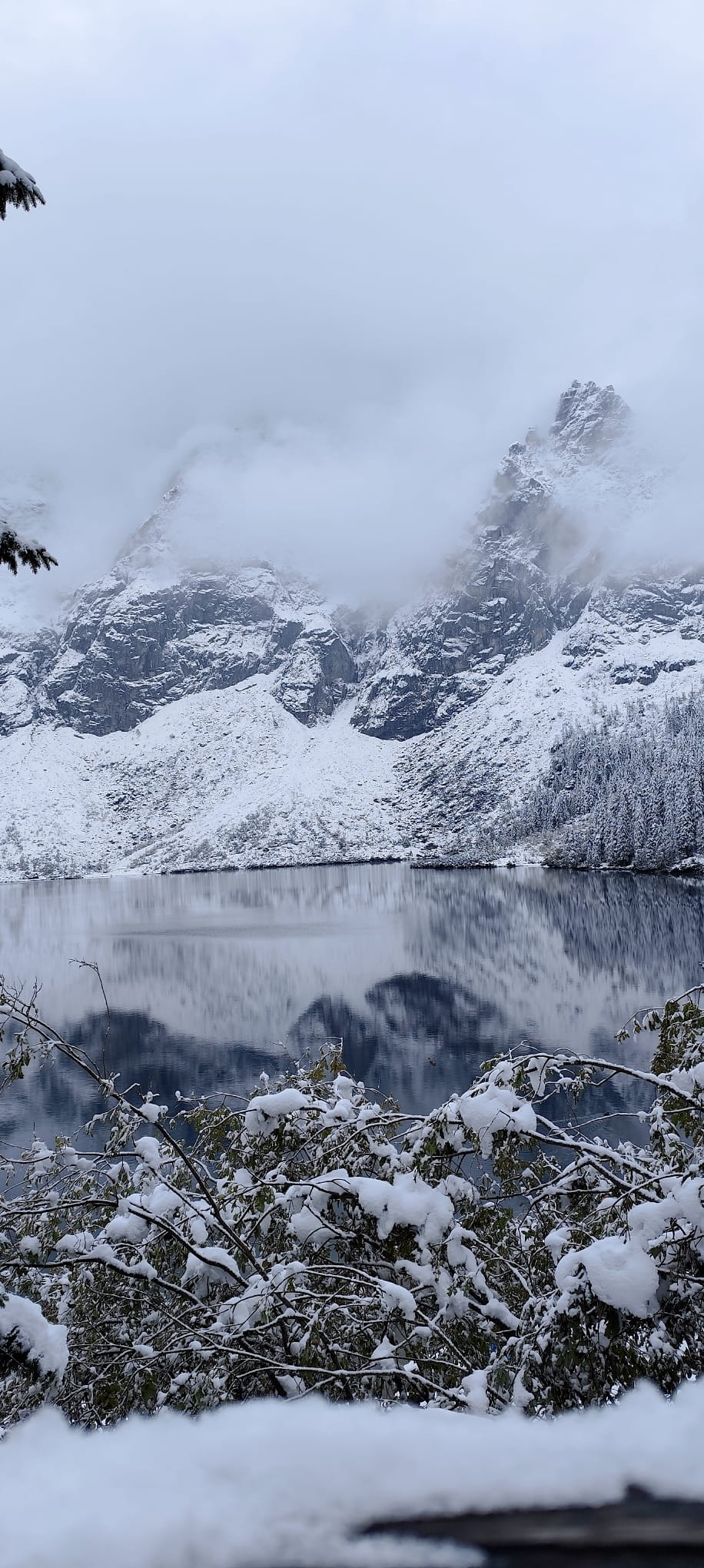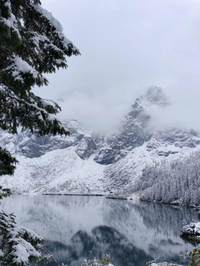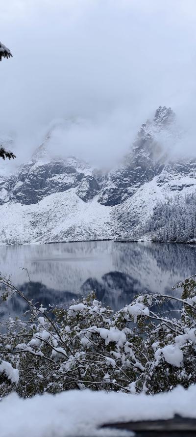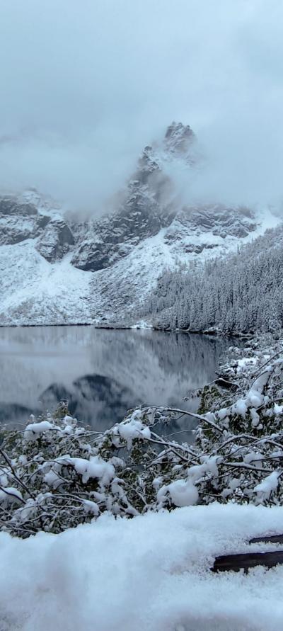 Jesienne klimaty ustąpiły miejsca bajkowym krajobrazom w zimowej scenerii. Widok jaki zastaliśmy po 2 godzinnej wędrówce, zapierał dech w piersiach. Najpiękniejsze tatrzańskie jezioro( a mówiąc językiem górskim STAW) zaserwował mam spektakl mgieł, słońca i odsłon tatrzańskich szczytów. Po odpoczynku, ruszyliśmy w drogę powrotną do Palenicy Białczanskiej - czyli kolejne 8,5 kilometra. Razem wyszło tylko