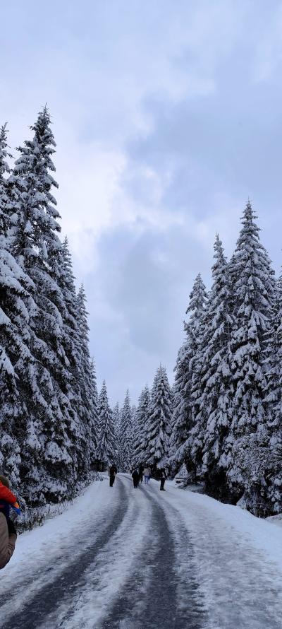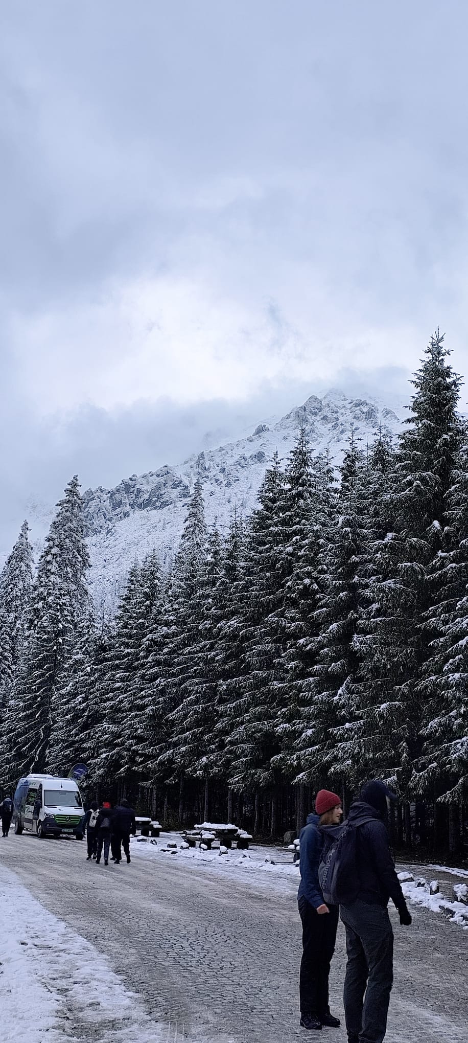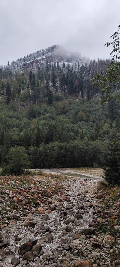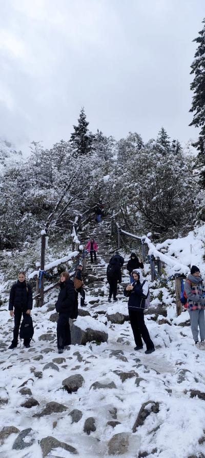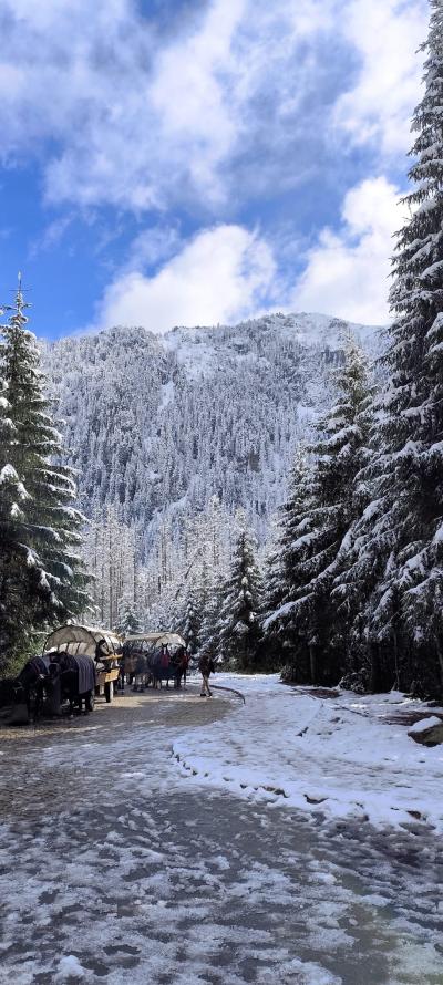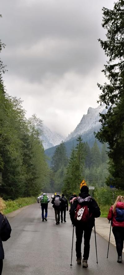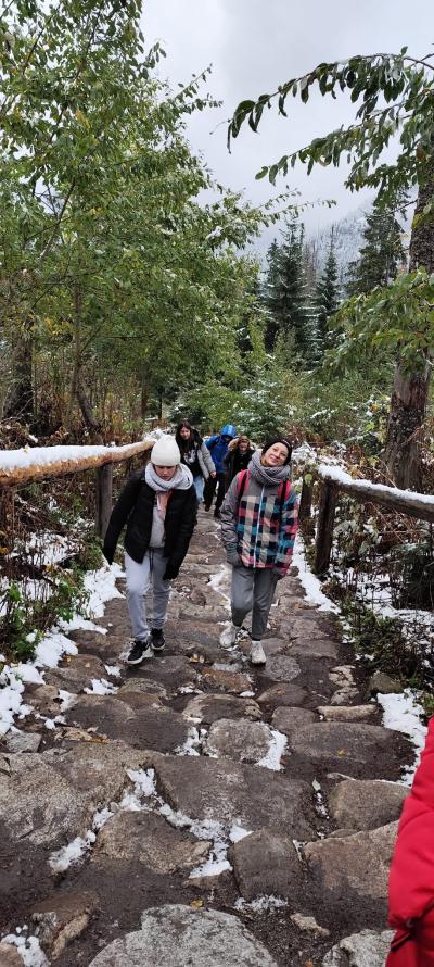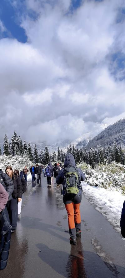 nocy, z apetytem skonsumowaliśmy pyszne śniadanko w stołówce pensjonatu. Pełni sił wyruszyliśmy na wędrówkę do Morskiego Oka. Z werwą i jesienną aurą wyruszyliśmy z parkingu w Palenicy Białczańskiej na 8,5 kilometrową trasę. W trakcie naszej wędrówki nagle wszystko zaczęło się zmieniać , jak w tajemniczym świecie Narnii.