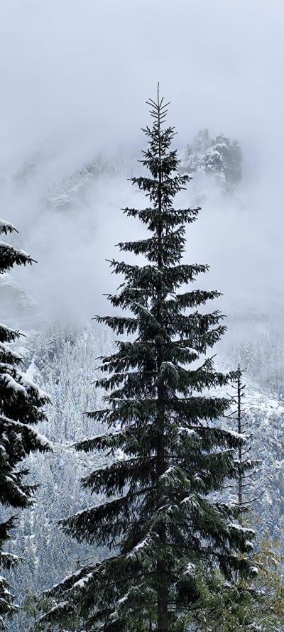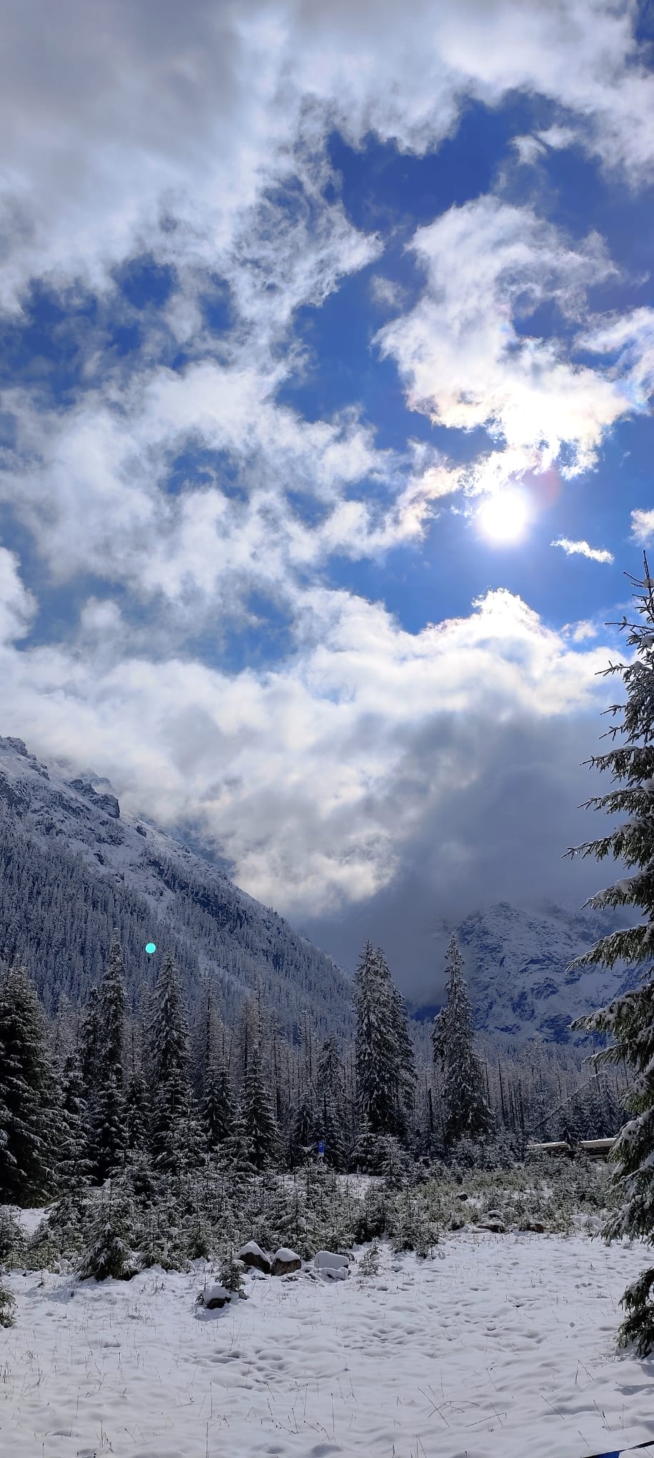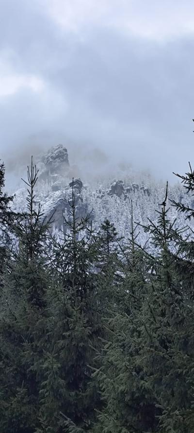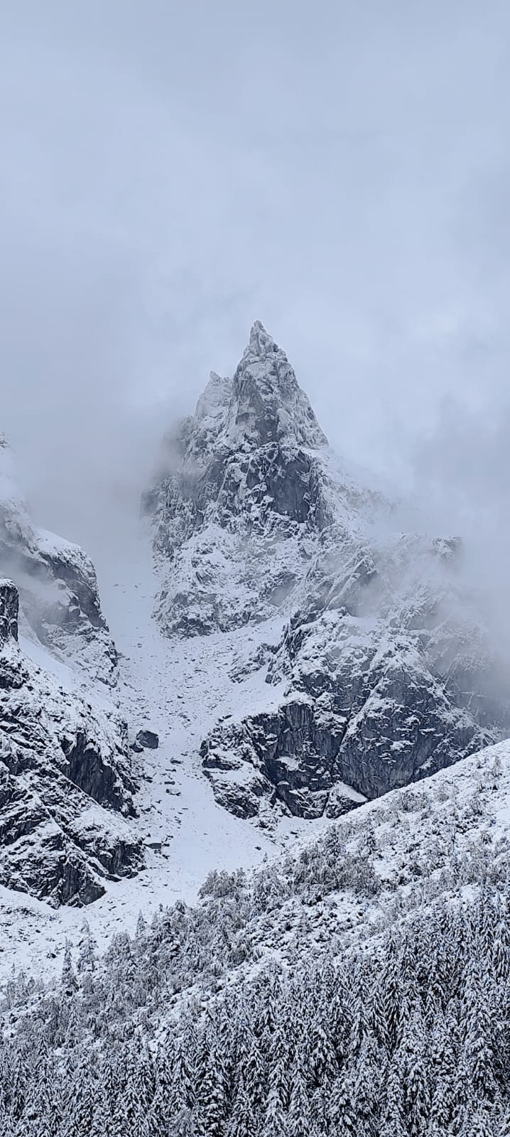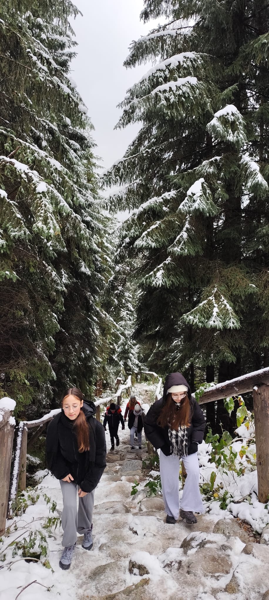 nocy, z apetytem skonsumowaliśmy pyszne śniadanko w stołówce pensjonatu. Pełni sił wyruszyliśmy na wędrówkę do Morskiego Oka. Z werwą i jesienną aurą wyruszyliśmy z parkingu w Palenicy Białczańskiej na 8,5 kilometrową trasę. W trakcie naszej wędrówki nagle wszystko zaczęło się zmieniać , jak w tajemniczym świecie Narnii.