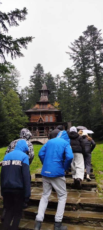 Zakopane przywitało nas deszczową pogodą ale nas to nie odstraszyło i nie zepsuło naszych humorów. Zwiedzanie rozpoczęliśmy od kościółka na Jaszczurówce, później odwiedziliśmy Tatrzańskie Centrum Edukacji Przyrodniczej. Oczywiście nie mogło zabraknąć na naszej drodze symbolu zakopanego, czyli Wielkiej Krokwii i słynnych Krupówek. Wyjazd wyciągiem krzesełkowym na Gubałówkę zamienił się w magiczną podróż we mgle w inną czasoprzestrzeń, gdyż sami nie wiedzieliśmy gdzie jesteśmy