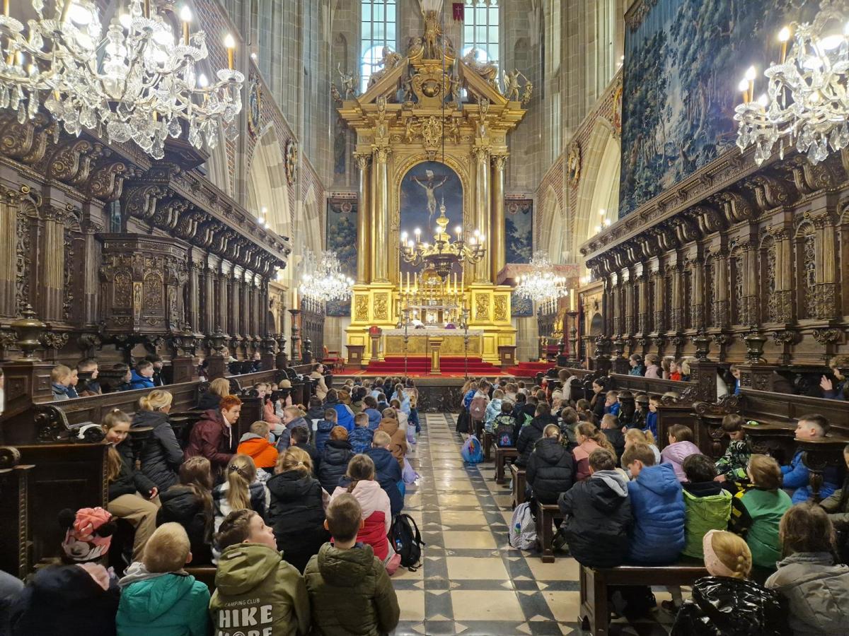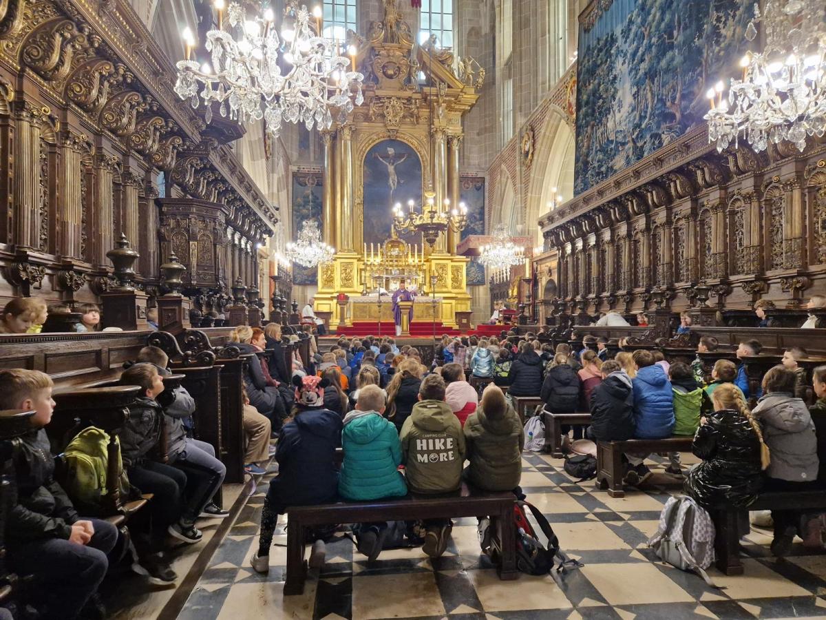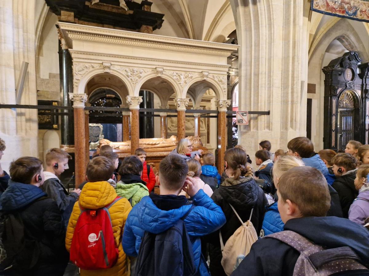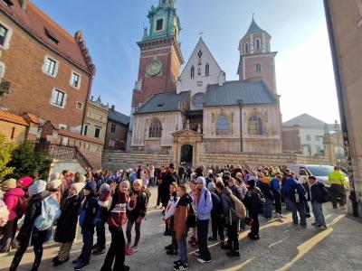Tegoroczne obchody Święta Patrona Szkoły były wyjątkowym wydarzeniem, które spędziliśmy wspólnie w Krakowie, na Wawelu. Uroczystości rozpoczęliśmy mszą świętą w Katedrze Wawelskiej przy ołtarzu koronacyjnym. Jako szkoła im. Władysława Jagiełły złożyliśmy również wizytę przy sarkofagu naszego patrona. Następnie każda klasa uczestniczyła w lekcjach muzealnych na Zamku Wawelskim. Na zakończenie dnia zwiedzaliśmy miasto z przewodnikiem.