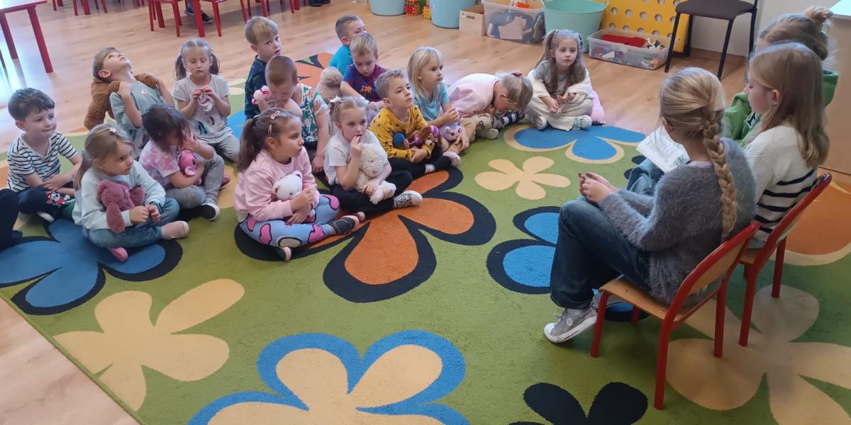 Dzień Pluszowego Misia stał się okazją do zorganizowania zajęć literacko-plastycznych w gr. Motylków oraz oddziale przedszkolnym Ob. Klub Czytelniczy oraz nauczyciel bibliotekarz czytał dzieciom książkę pt. "Miś Uszatek". Następnie przedszkolaki wcielili się w misiowych detektywów i rozpoznawali misie, tańczyli z misiami do piosenki "Jadą, jadą misie" oraz układali puzzle. Na zakończenie wykonali prace plastyczną techniką origami - Miś Uszatek oraz Maska Misia wg własnego pomysłu. W bibliotece szkolnej na czytelników czeka duży miś do tulenia, wystawa książek o misiach oraz naklejki dla wypożyczających książki 🙂