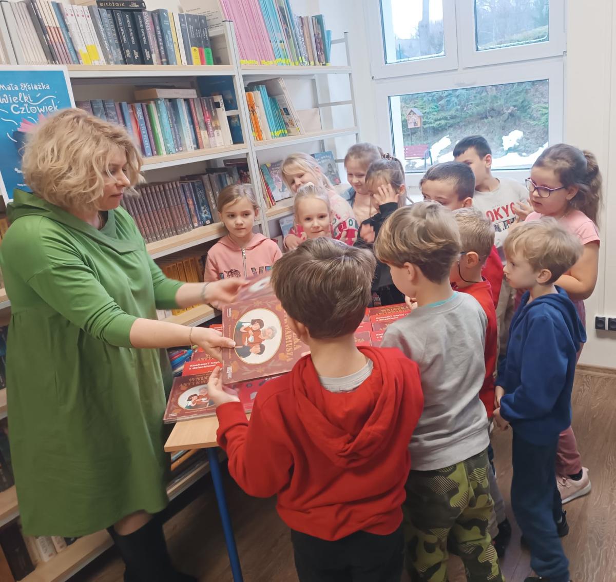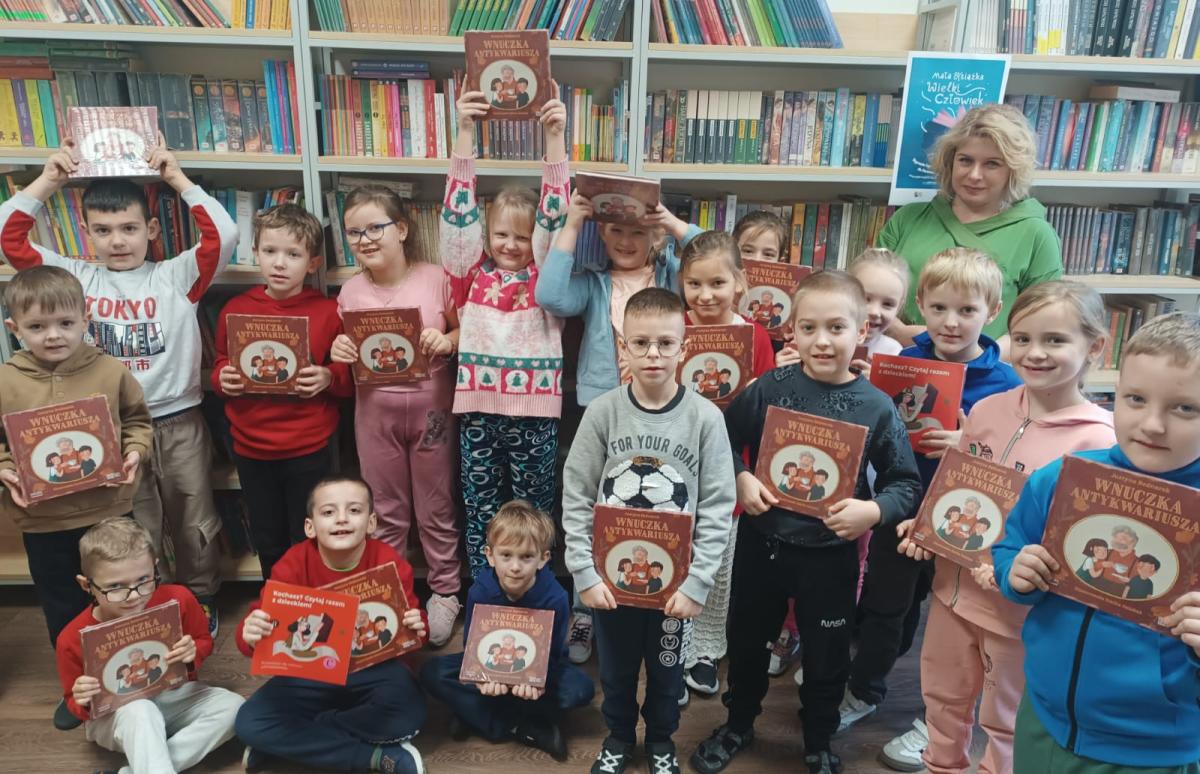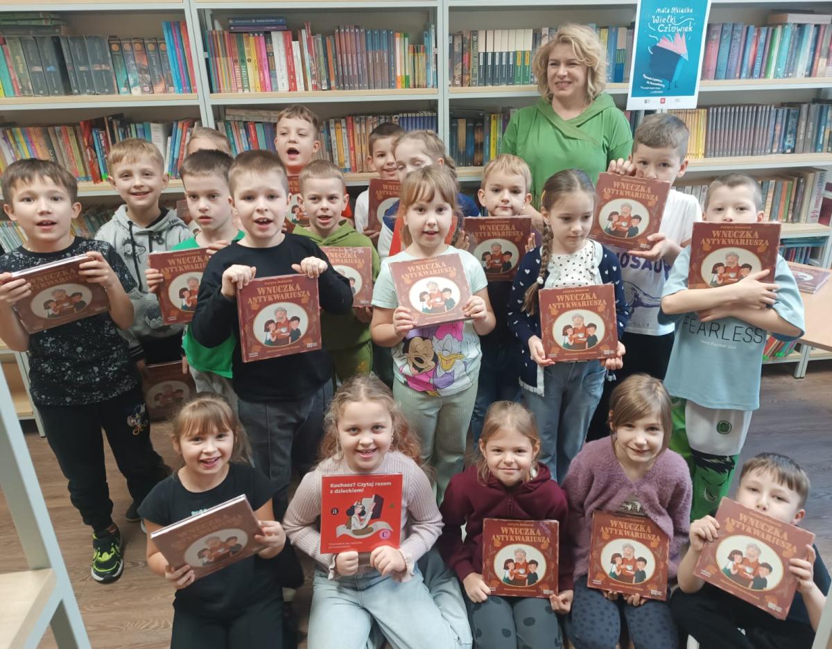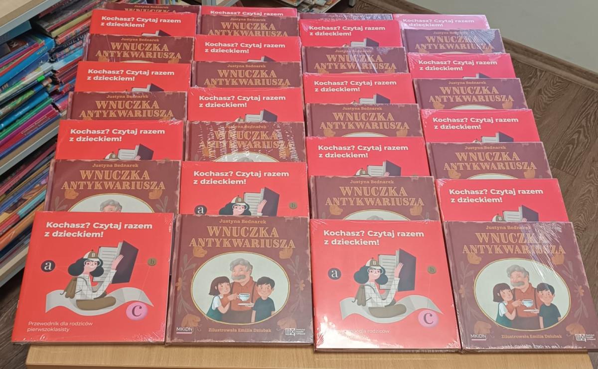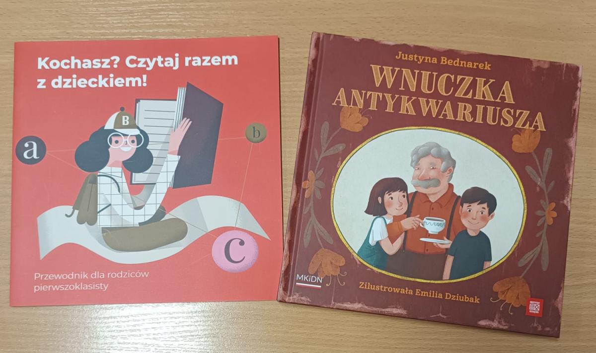 W ramach ogólnopolskiego projektu "Mała książka - wielki człowiek", którego celem jest promocja czytelnictwa wśród dzieci w różnych grupach wiekowych. Uczniowie klas I otrzymali wyprawkę czytelniczą przekazaną przez Instytut Książki z rąk Pani Dyrektor Izabeli Zaczyk w bibliotece szkolnej. W skład każdej Wyprawki wchodzi: *"Wnuczka antykwariusza" - książka cenionej pisarki Justyny Bednarek, *"Kochasz? Czytaj razem z dzieckiem!" - broszura, która jest poradnikiem dla rodziców i opiekunów, mówiącym o korzyściach wynikających ze wspólnego, rodzinnego czytania, a także zbiorem rekomendacji wartościowych książek przeznaczonych
